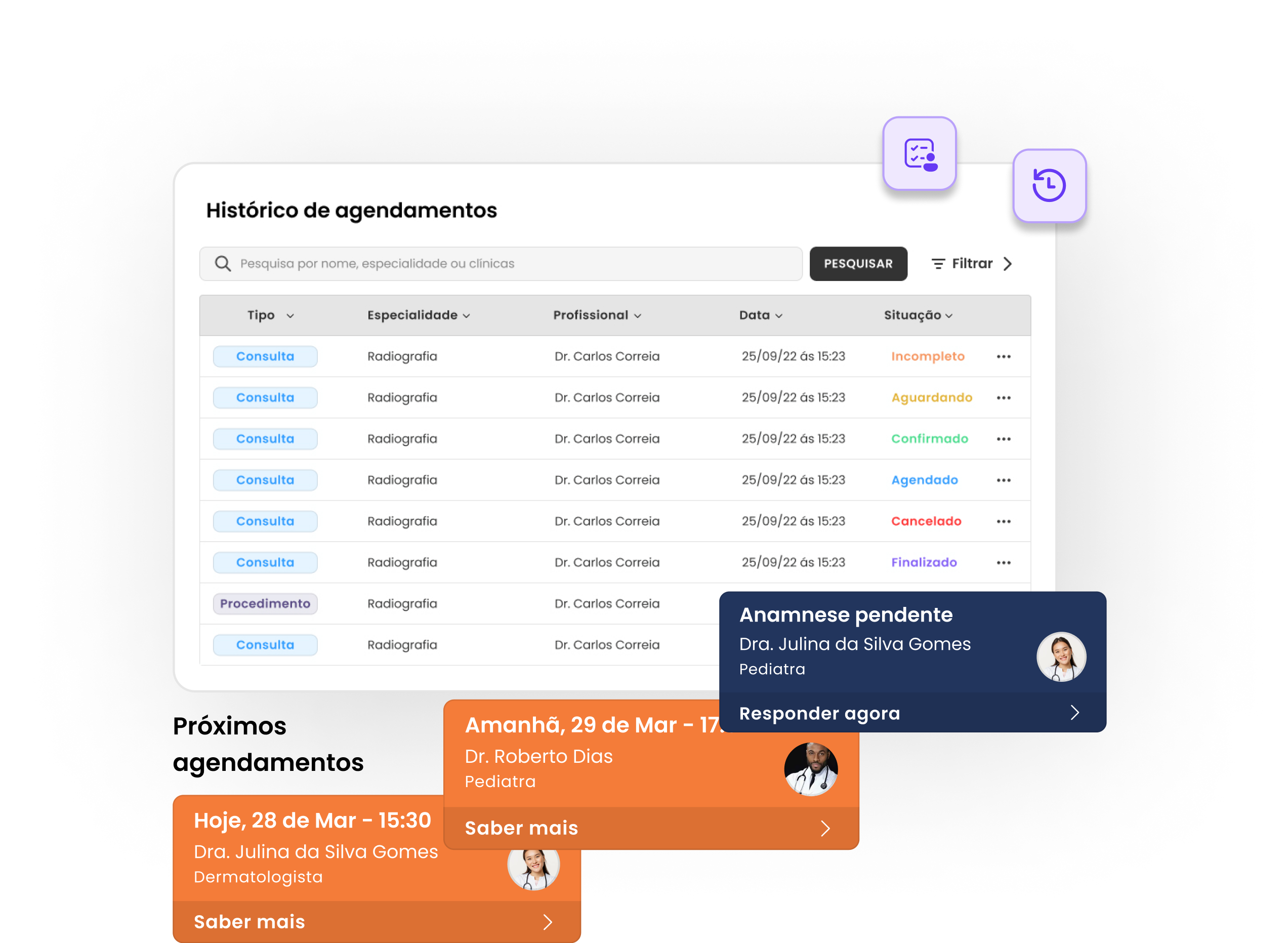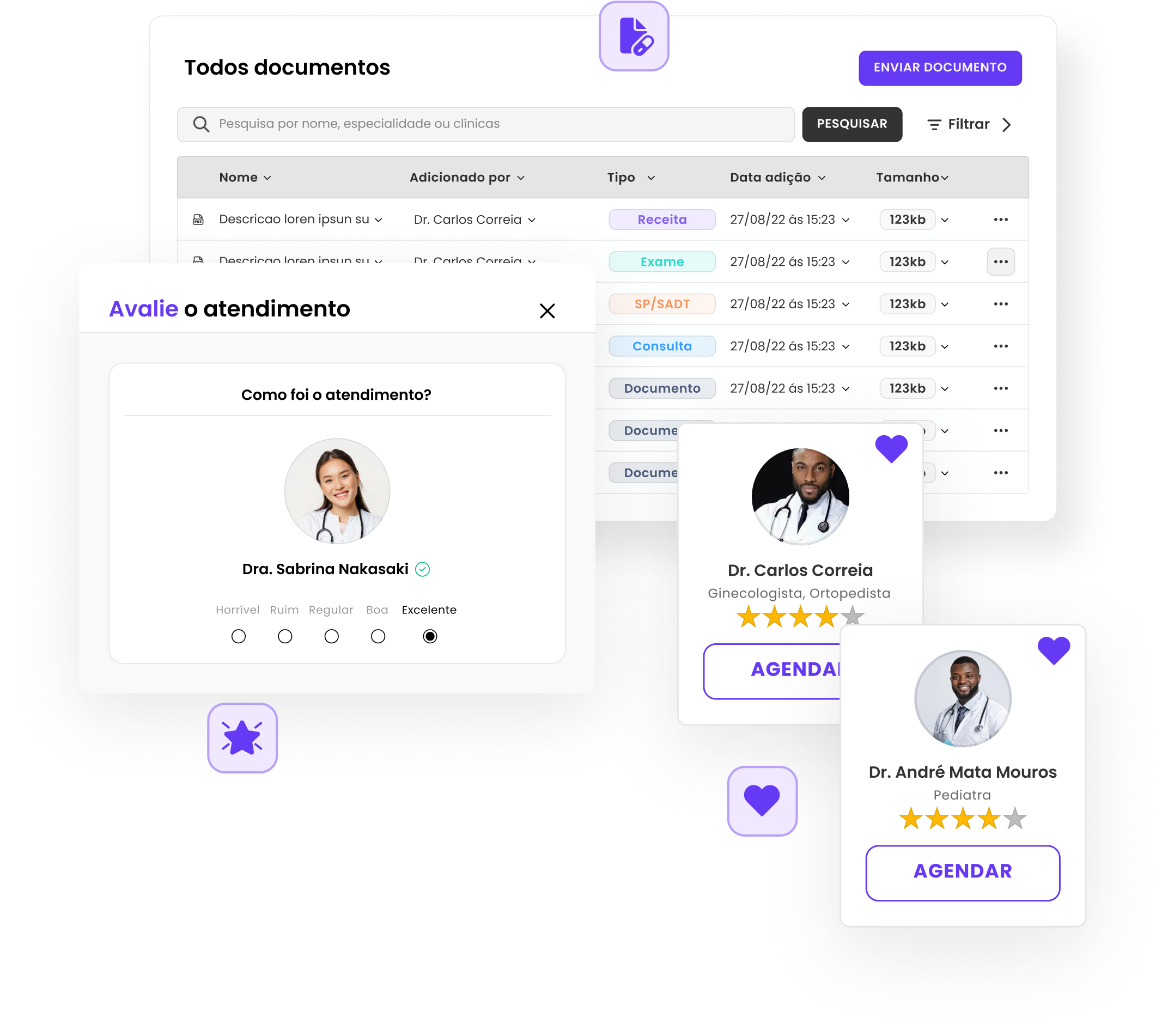 Avalie as consultas, adicione favoritos, configure seus documentos (receitas, exames, atestados...) e muito mais.