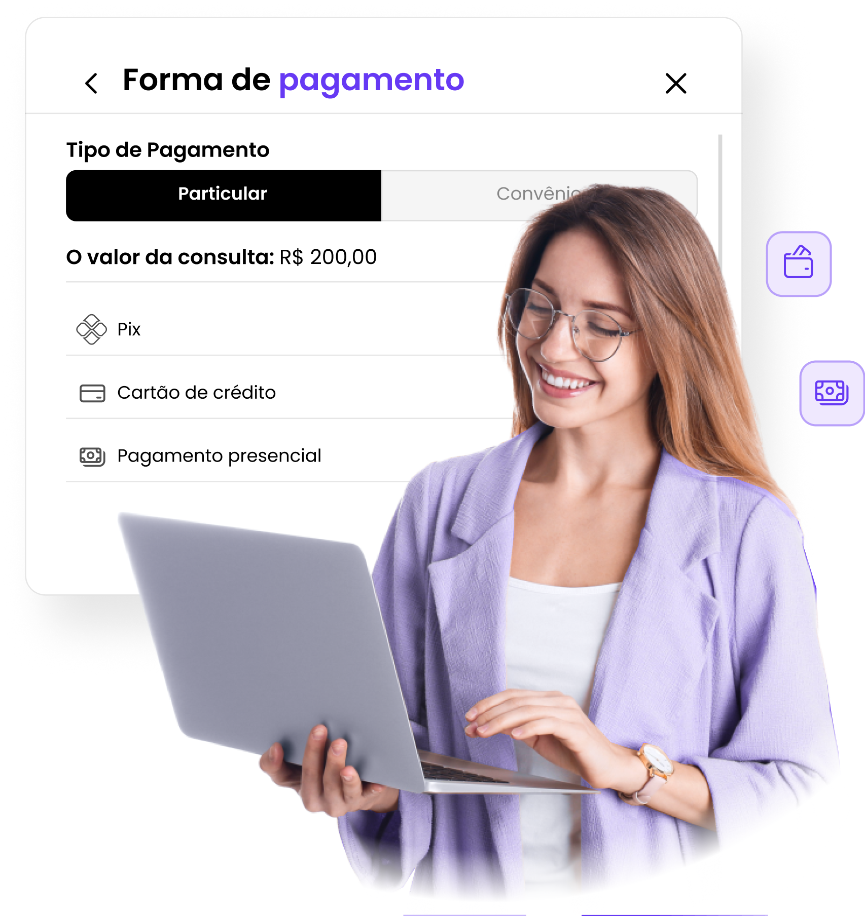 Selecione o dia, horário que preferir, marque sua consulta, realize o pagamento de forma 100% segura em apenas alguns cliques.